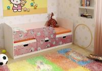 Дизайн модели предусматривает защитный бортик, который обеспечит безопасность во время сна, наличие трех выдвижных ящиков позволит хранить в них игрушки или постельное белье, отсутствие ножек облегчит вам уборку, так как под основанием не будет скапливаться пыль, на фасады ящиков и бортика нанесена фотопечать.