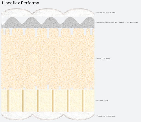 Ортопедический матрас Performa со сложной внутренней системой, построенной на беспружинном блоке, которая способна подарить невероятный комфорт Вашей кровати. Помимо высококлассного удобства, данная модель обеспечивает оздоровительный эффект Вашему телу, деликатно поддерживая позвоночник во время сна. Проснувшись, Вы почувствуете себя заново рожденным, исчезнут болевые ощущения в спине и суставах, улучшится кровообращение и настроение в целом.