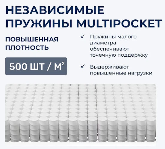 Подпись к товару Max. вес на спальное место - 160 кг, С независимыми пружинами Multi Pocket S1000, любой размер матраса