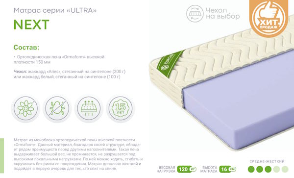 | Тип матраса | Беспружинный |