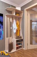 Прихожая ПР-2 вместительна и эргономична одновременно – она имеет достаточное количество крючков и полок для удобства размещения вещей. Вместе с тем, плавные радиусные формы некоторых значимых деталей превращают ее в современное решение. В правой части прихожей расположен выдвижной ящик для ключей, перчаток и других необходимых мелочей. Под ящиком имеются две открытые ниши для обуви, чтобы без лишних движений скинуть любимые туфли и пойти отдыхать. Своей конструкцией выдвижной ящик создает дополнительную открытую полку - здесь удобно размещать сумки и пакеты. Ну и какая прихожая без зеркала? Этот важный элемент учтен в представленной модели. Также большим преимуществом открытой прихожей является наличие крючков, количество которых можно увеличить. Крыша прихожей удачно образует две дополнительные полки для хранения головных уборов и шарфов. Таким образом, прихожая будет уместна не только дома, но и в офисе.
