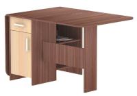 СТ-2 – это традиционный стол-книжка. В разобранном состоянии модель напоминает тумбу. Но благодаря складной конструкции, при необходимости обе створки стола поднимаются и образуют стол более полутора метров в длину. Опора стола имеет конструкцию, позволяющую удобно располагаться с любой стороны стола. Данная модель имеет также множество полок, закрытых от глаз, и ящик для столовых принадлежностей.